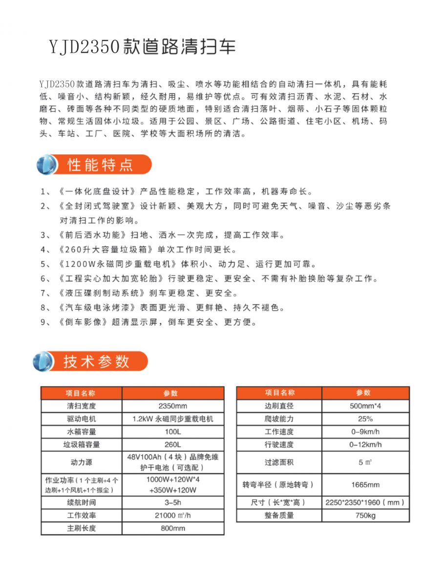 YJD2350款 单风机道路清扫车