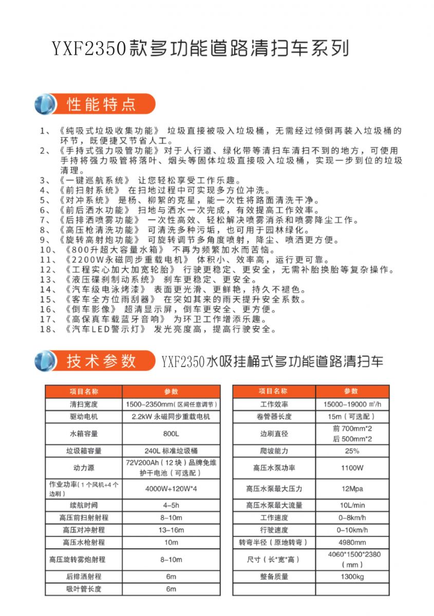 YXF2350款纯吸挂桶式多功能道路清扫车