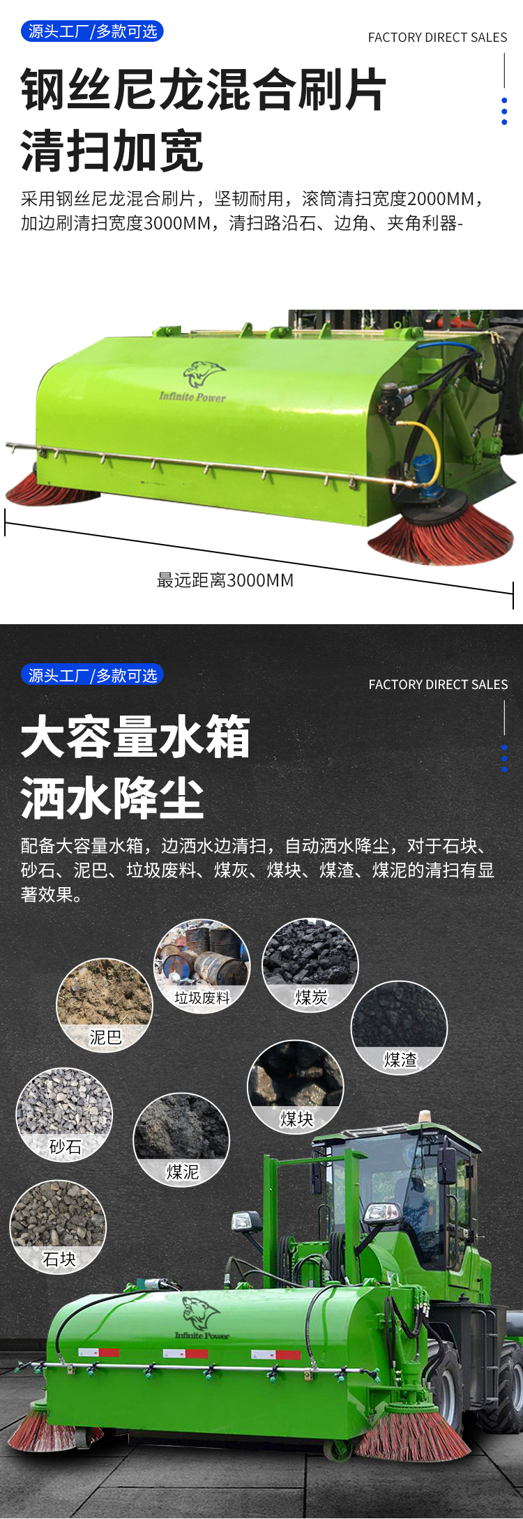3: 前进清扫,边刷选配,喷雾除尘选配。